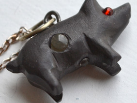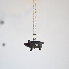 ヴィクトリアンから1920年代頃に作られた物で、豚の胴体にあるレンズを覗くと、