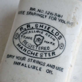 1880-90年代頃、イギリスで作られたヴァイオリンの弓に塗るマツヤニの容器です。