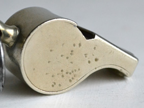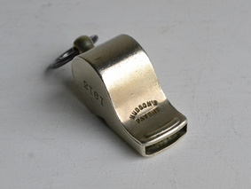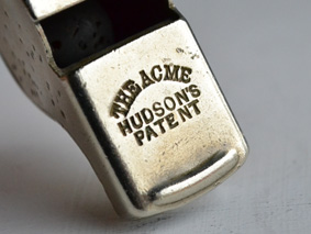 素材はニッケルメッキされた真鍮、製造はイギリスのホイッスルメーカー、J Hudson & Co です。