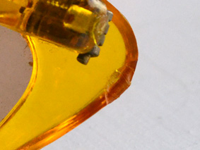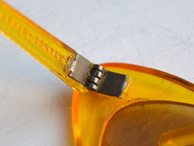 経年のユガミ、ヒンジにユルミ、フレームに小さなカケがあります。