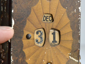 ティーメーカーの販促品で、ダイヤルを回して月と日付を調節できるカレンダーが付いています。