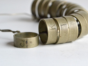 イギリス製でサイズ表記はアルファベット、リングは、J から Z までの17個付いています。