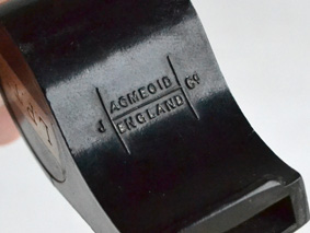 素材はベークライト、製造はイギリスのホイッスルメーカー、J Hudson & Co です。