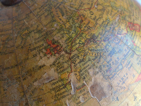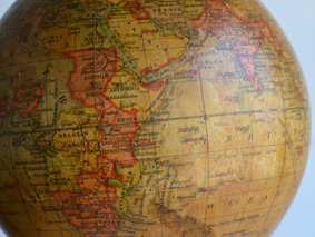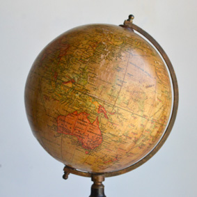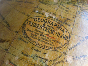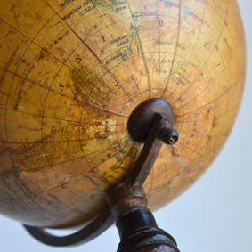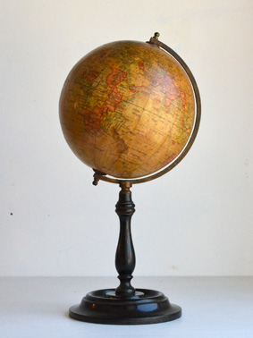 1910年代後半から20年代頃に作られたイギリス製の地球儀です。