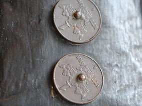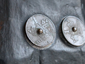 スウェーデンの通貨、クローナの補助単位、Ore の 1 Ore コインが7個、飾りとして取り付けられています。