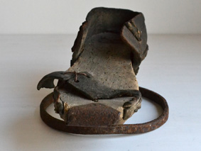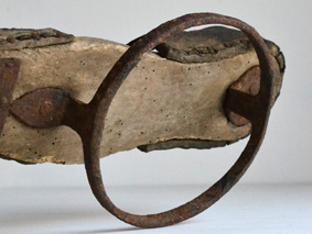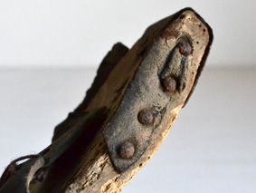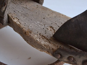 素材は木の他、鉄とレザー、木部は多数の虫食い穴、鉄部にはサビ、レザーは硬化、ヒビ、切れた個所があります。