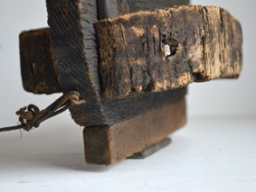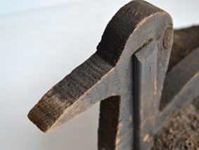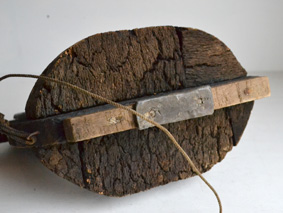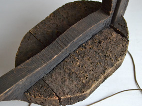 木製で、底には重しとして鉛が打ち付けてあります。
